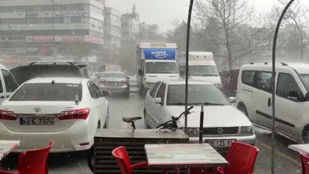 Konya’da kent merkezinde etkili olan sağanak yerini doluya bıraktı.