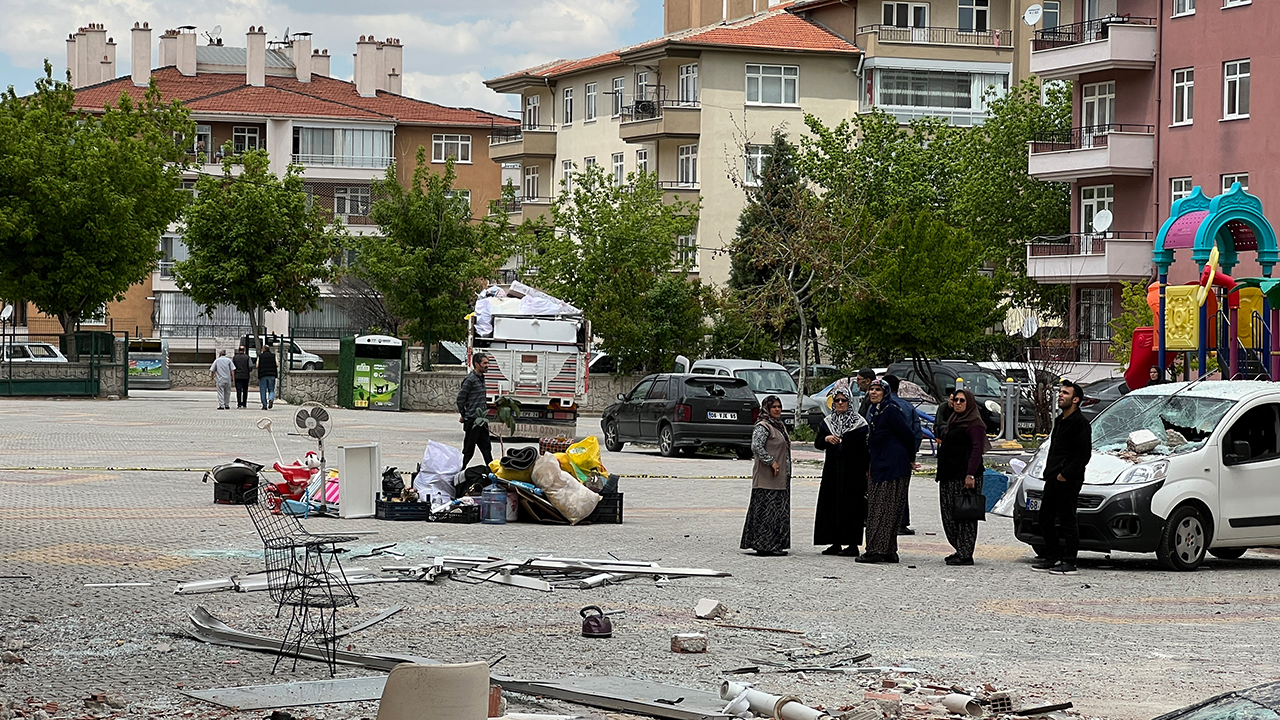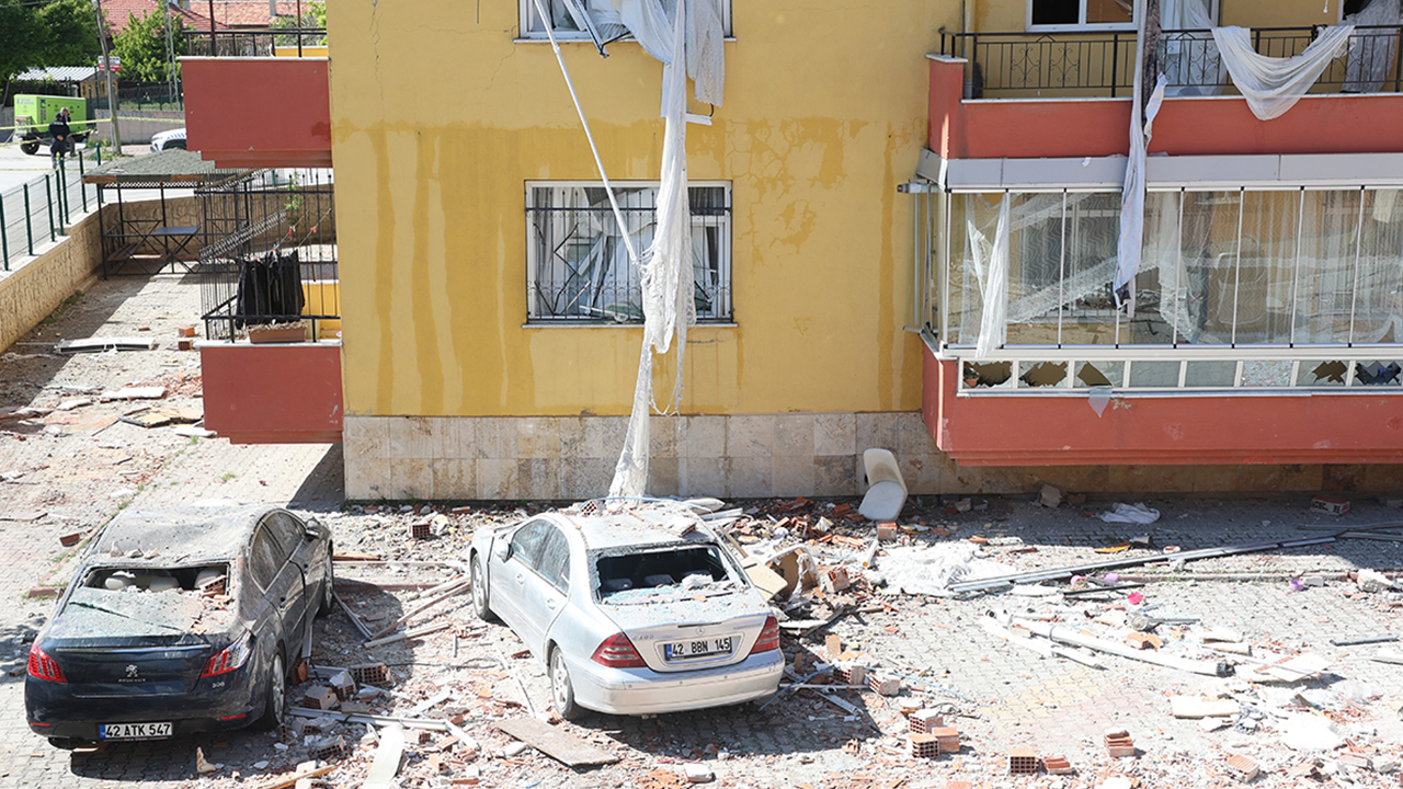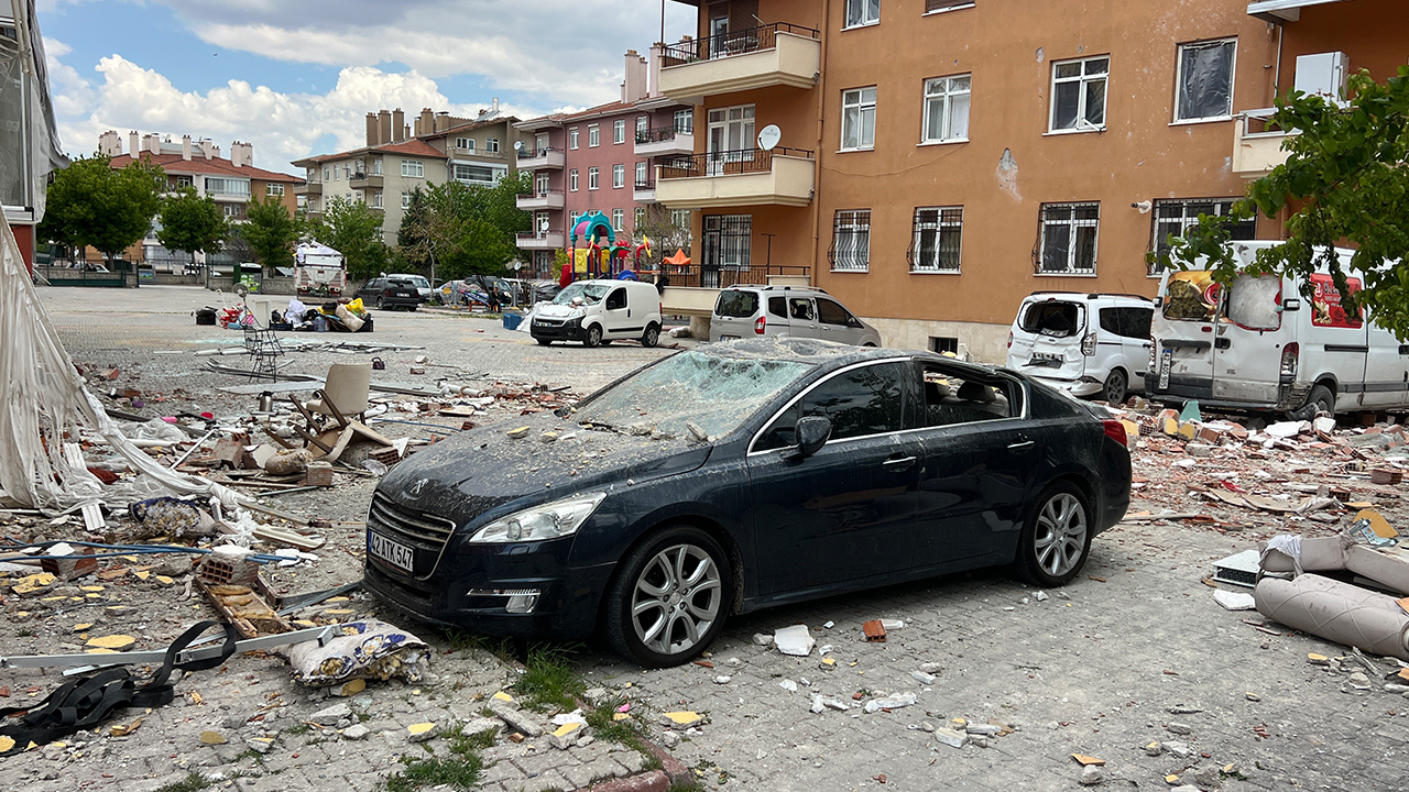 Konya’da bir kişi tarafından doğalgaz borusunun kesilmesi ile yaşanan patlamada mağdur olan aileler eşyalarını apartmandan çıkarma telaşına düştü.