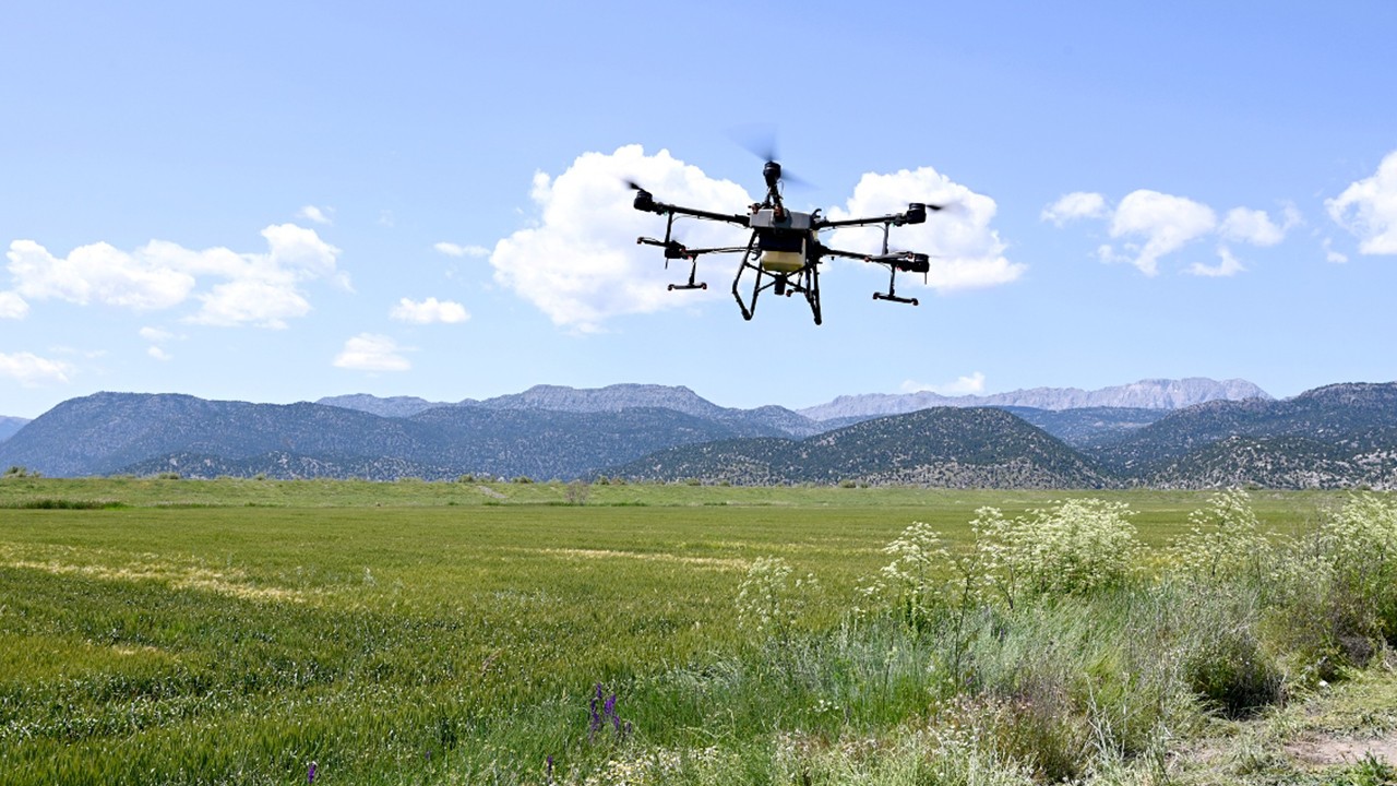 Başkan Tutal, profesyonel bir firma tarafından buğday ekili alanların zarar görmemesi, tarlanın her noktasının daha iyi ilaçlanması ve maliyetinin de daha az olması nedeniyle drone kullanarak ilaçlama yapıldığını belirtti.