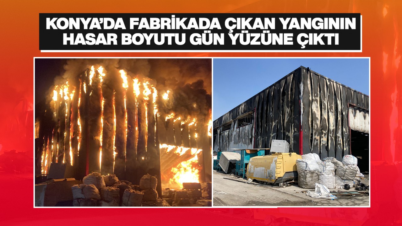 Konya'nın Selçuklu ilçesinde dün akşam saatlerinde plastik dönüşüm fabrikasında çıkan yangının hasar boyutu gün yüzüne çıktı.