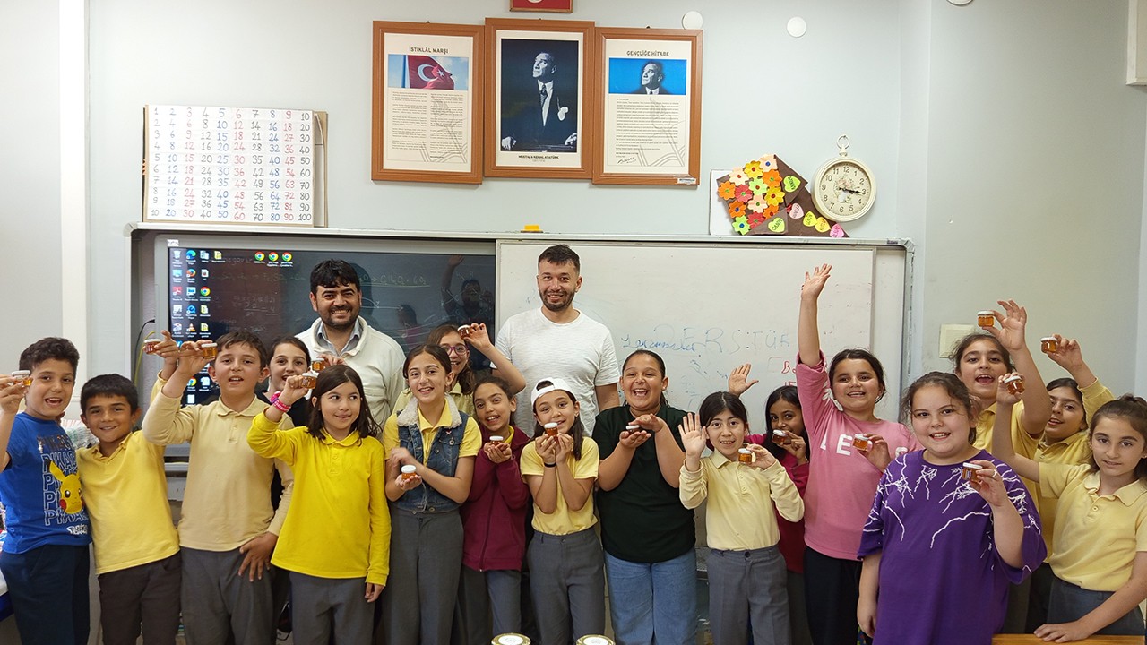Daha sonra öğrencilere, bal ikram edildi. Program, öğrencilerin sorularının cevaplanması fotoğraf çekimiyle sona erdi.
