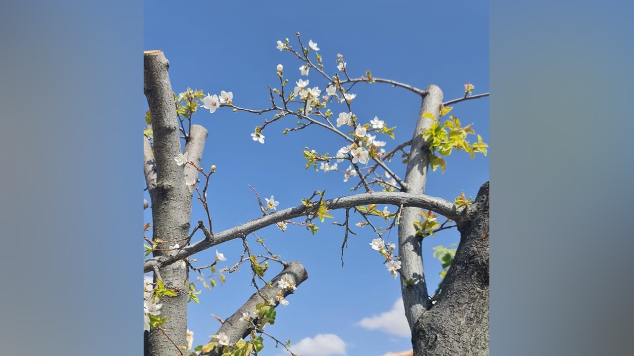 Hava sıcaklıklarının mevsim normallerinin üzerinde seyrettiği Kulu ilçesinin Ömeranlı Mahallesinde müstakil bir evin bahçedeki ağacın çiçek açtığı görüldü. Ev sahibi Oğuz Aka, bahçesinde yaşanan durum karşısında şaşkınlık yaşadı.