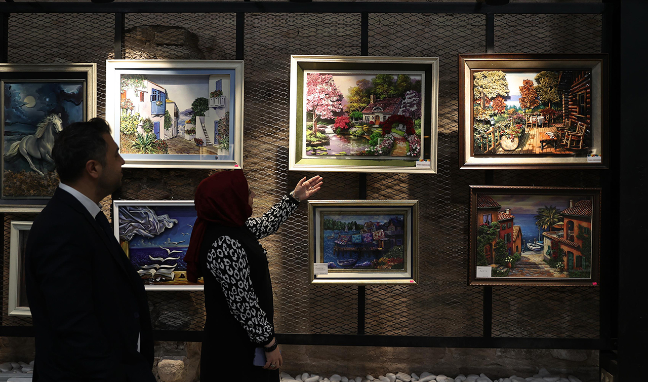 Konya'da kağıt rölyefle yapılan eserler sanatseverlerin beğenisine sunuldu.