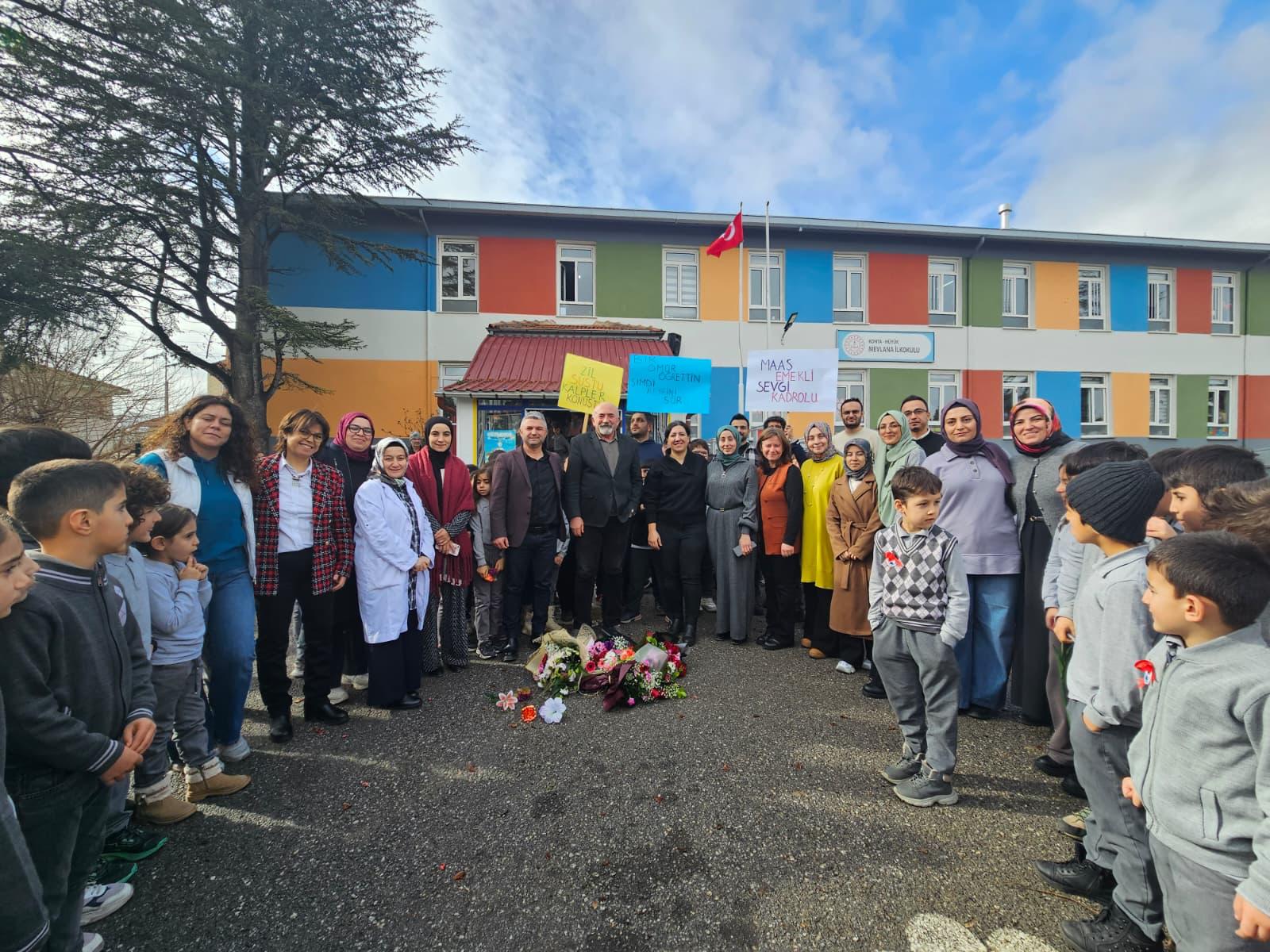 Konya'nın Hüyük ilçesindeki Mevlana İlkokulu'nda 39 yıl boyunca eğitime ve öğrencilerine hizmet eden öğretmen Talat Peker için anlamlı bir veda programı düzenledi.