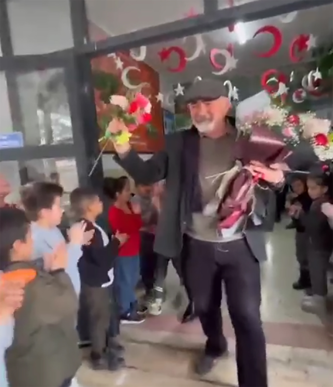 Veda programı teşekkür mesajları ve iyi dileklerle sona ererken, Mevlana İlkokulu öğrencileri, "İyi ki Mevlana İlkokulu’nda görev yaptınız, iyi ki öğretmenimiz oldunuz" sözleriyle öğretmenlerine veda ettiler. (Yunus Köroğlu)