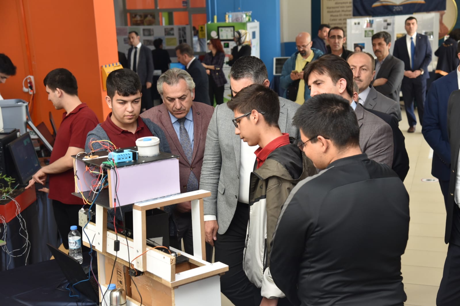 Sanayi ve Teknoloji Bakan Yardımcısı Sayın Oruç Baba İnan, ülkemizin üretip kendi ihtiyaçlarını karşılaması gerektiğini belirterek her alanda dünyanın en iyisi olmaktan başka çaremizin olmadığını söyledi. Projeler için emek veren, akıl teri döken, bir şeyler üretmek için çalışan öğrencilerimize teşekkür etti.