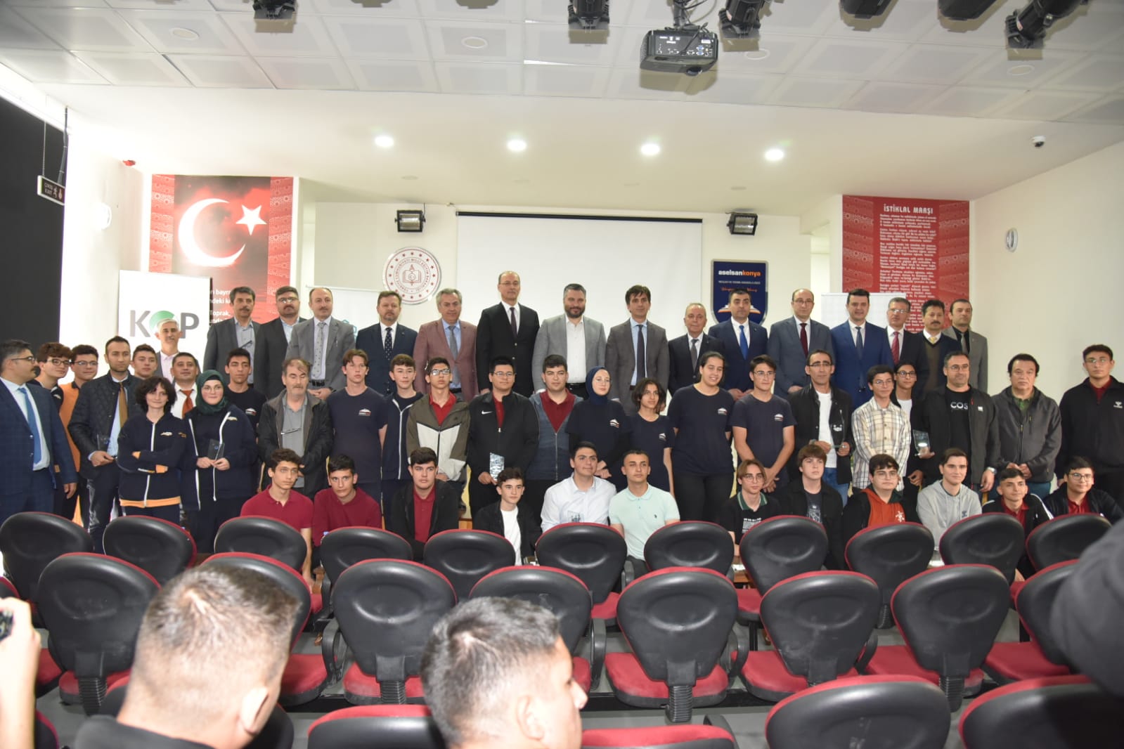 Konuşmaların ardından dereceye giren öğrencilere ödülleri protokol üyeleri tarafından takdim edildi.Ödül törenine; Konya Sanayi ve Ticaret İl Müdürü Vehbi Konarlı, ASELSAN Konya Genel Müdürü Bülent Işık, eğitim yöneticileri, öğretmen ve öğrenciler de katıldı. (Hasan Yıldırım)
