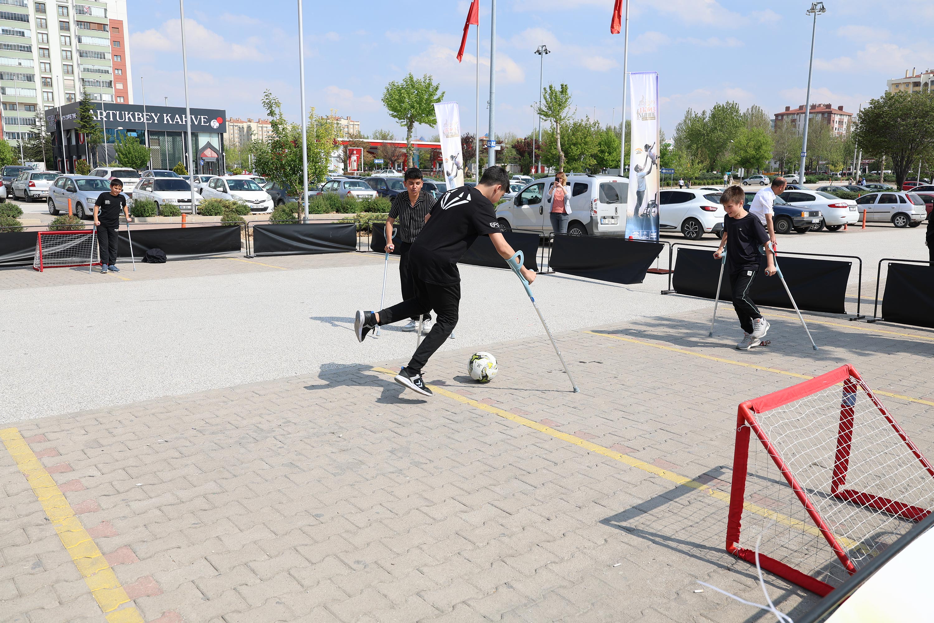 Konya Büyükşehir Belediyesi tarafından hafta kapsamında engelli bireylerin günlük yaşamda karşılaştıkları zorluklara dikkat çekmek amacıyla; hem serginin yapıldığı alışveriş merkezinden hem de şehrin farklı noktalarında empati parkuru kuruldu. Golbol, tekerlekli sandalye basketbol, ampute futbol ve görme engelliler satrancı gibi engelli spor branşların yer aldığı parkura katılan vatandaşlar, özel bireylerin karşılaştıkları engelleri bire bir deneyimleyerek empati kurma fırsatı buldu.