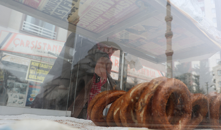 Konya'da eşinin kaza geçirmesinin ardından evin geçimine katkı için evinin önündeki cadde üzerine simit tezgahı açarak hem komşularının hem de müşterilerinin 'simitçi teyzesi' olan 58 yaşındaki Menekşe Demirkaya, her gün sabah erken saatlerde tezgahında simit satıyor.
