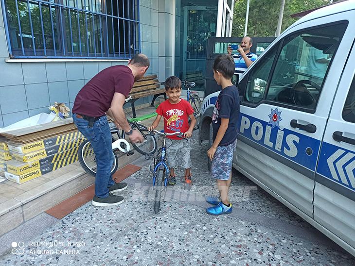 Bisikletlerinin bulunmasından dolayı çok mutlu olan çocuklar, polislere teşekkür ederek bisikletlerini teslim aldılar.