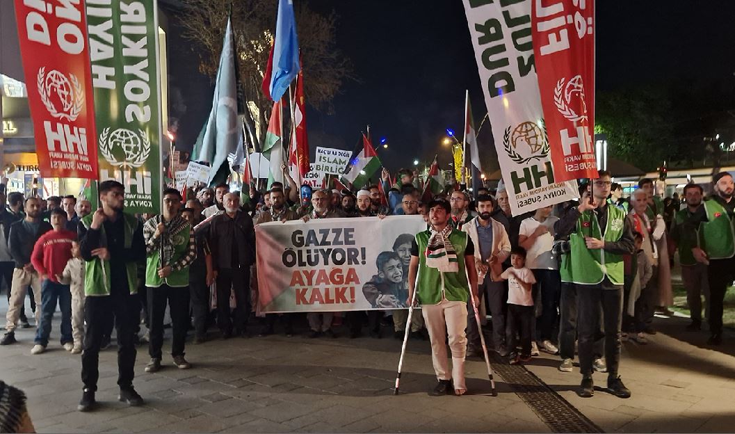 İsrail'in Gazze'de sistematik şekilde sürdürdüğü saldırılar devam ederken, bu ağır tabloya dikkat çekmek için İHH İnsani Yardım Vakfı Konya Şubesi öncülüğünde destek yürüyüşü yapıldı.Kılıçarslan Meydanı'nda başlayan destek yürüyüşü Gedavet Parkı'nda bulunan Hoca hasan Camii'nde son buldu. Yürüyüşün ardından basın açıklaması yapıldı.