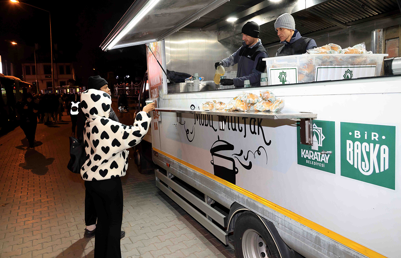 Karatay Belediyesi, kış şartlarının etkili olduğu günlerde mobil ikram araçları aracılığıyla vatandaşlara sıcak çorba ikramında bulunuyor.