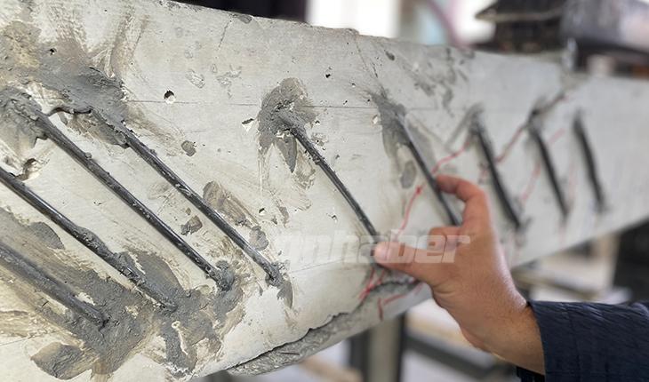 Doç. Dr. Aksoylu, geliştirdikleri yöntemde güçlendirilmesi istenen kirişlerde çelik çubuklarla adeta dikiş yapıldığını söyledi.