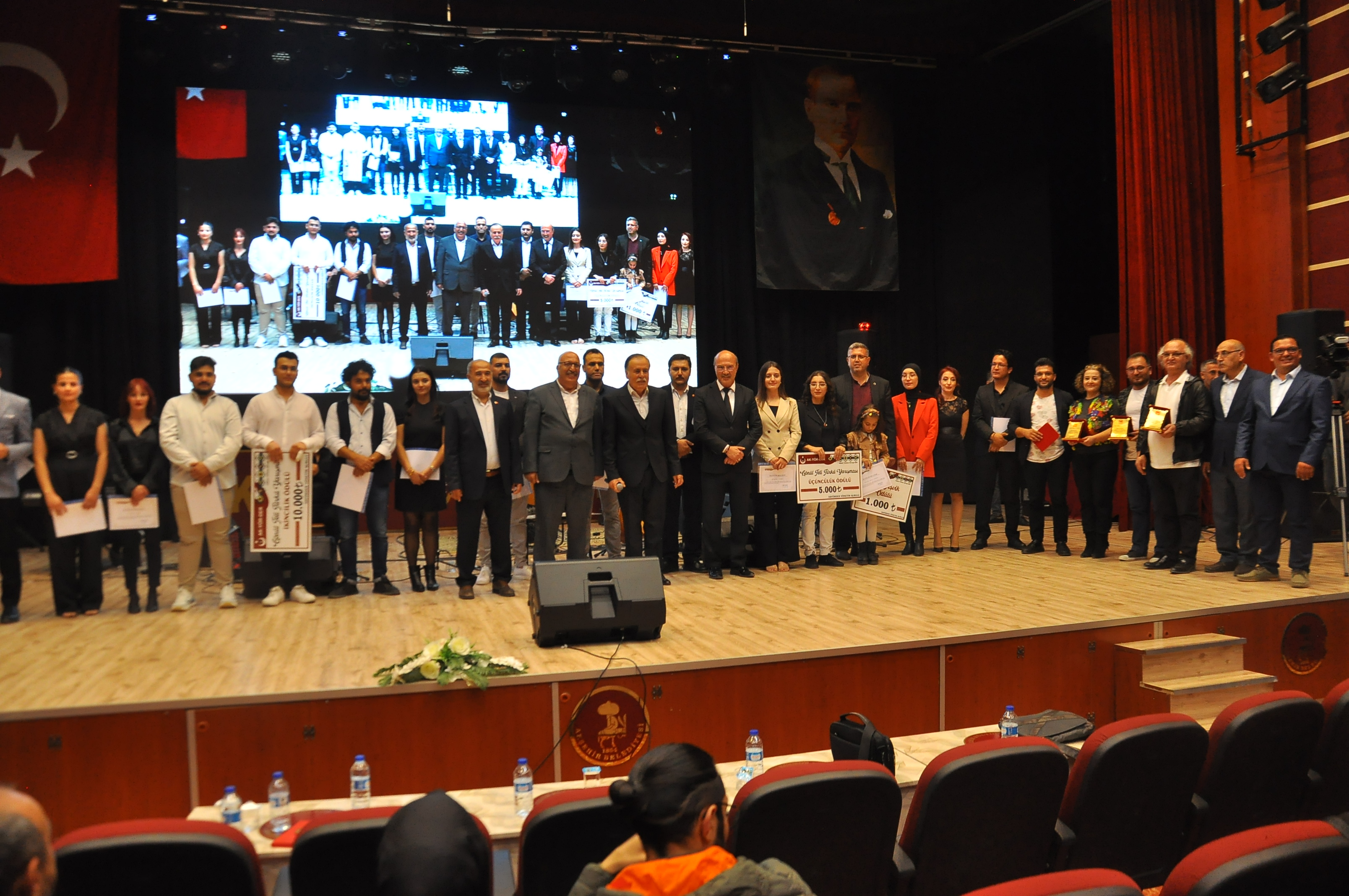 Dereceye giren yarışmacılar, ödüllerini protokol üyelerinin elinden aldı.