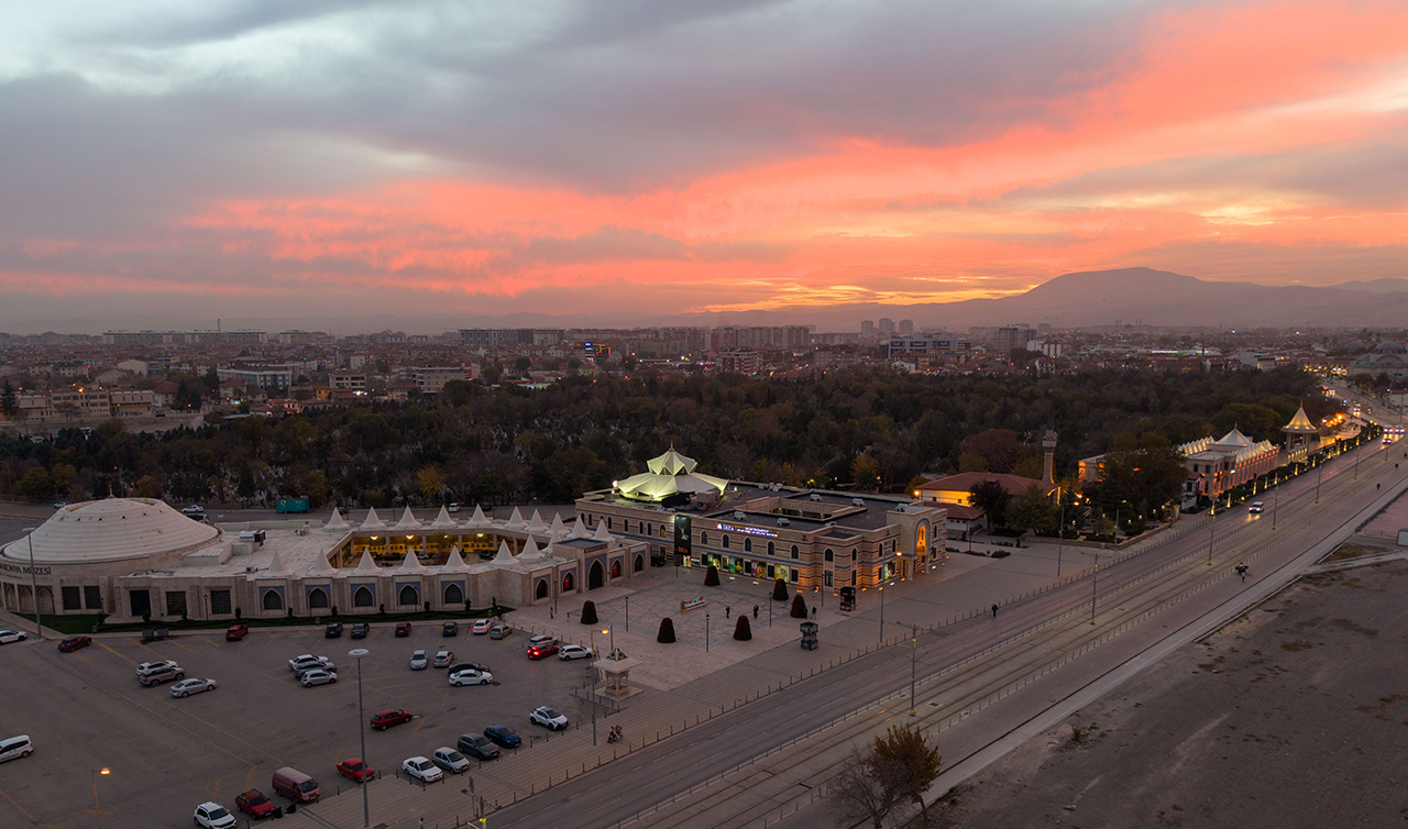 Konya'nın tarihi ve kültürel mekanları gün batımında kartpostallık manzaralar oluşturdu.