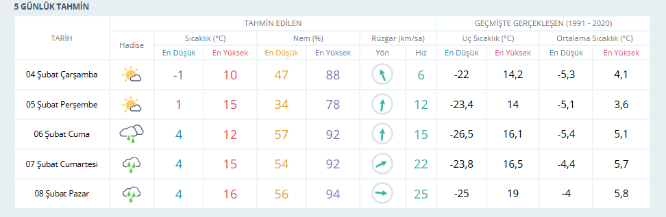KONYA'DA 5 GÜNLÜK HAVA DURUMU RAPORU