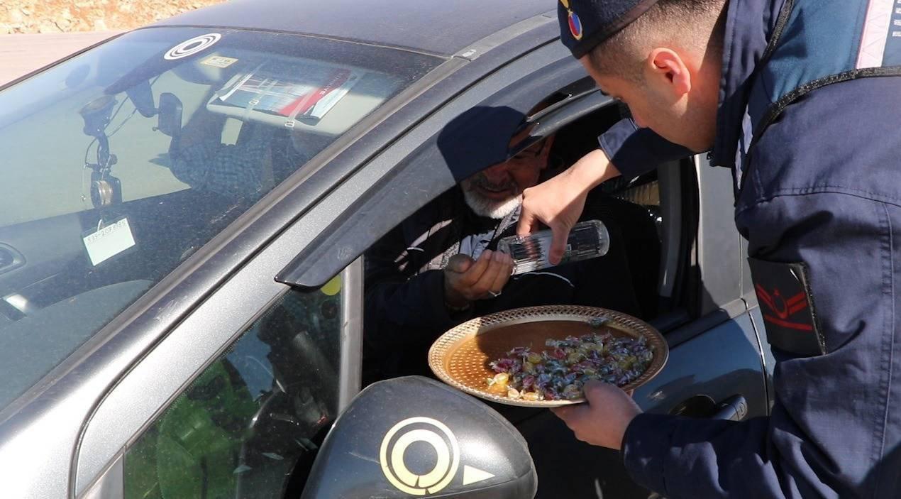 Ayrıca sürücü ve yolculara emniyet kemeri takmanın önemini ve seyir halinde cep telefonu kullanmamaları hususunda uyarılarda bulunarak, bayram vesilesiyle şeker ve kolonya ikramı edildi.