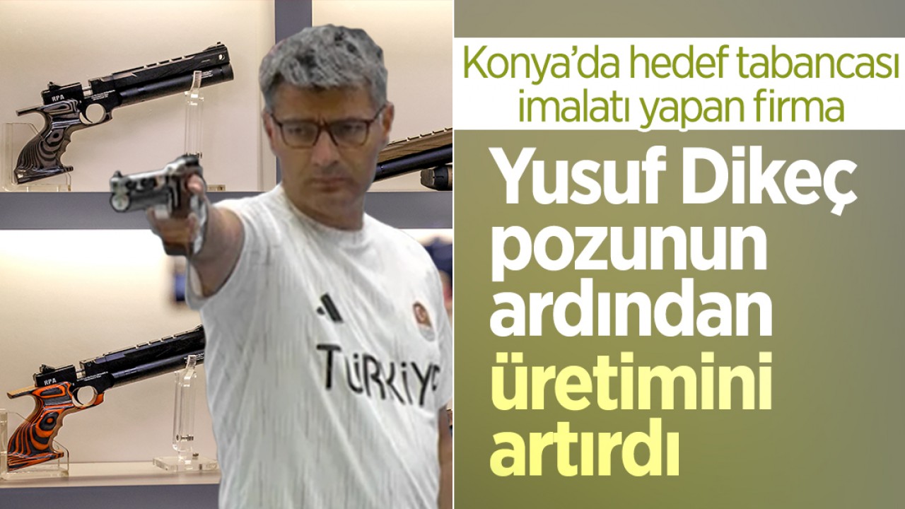 Konya'nın Beyşehir ilçesinde havalı hedef tabancası imalatı yapan firma, Paris 2024 Olimpiyat Oyunları'nda takım arkadaşıyla atıcılıkta Türkiye'ye gümüş madalya kazandıran Yusuf Dikeç'in dikkati çeken duruşu sonrası gelen talepler dolayısıyla üretimini artırdı.