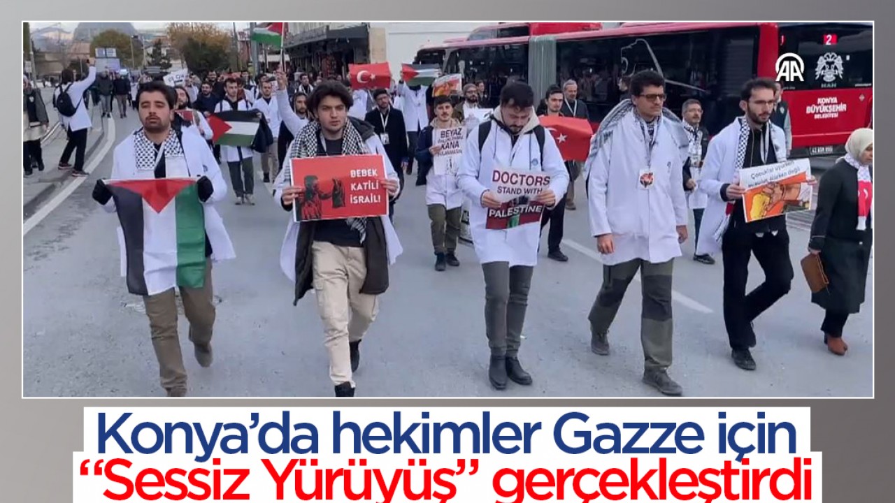 Konya'da hekimler, İsrail'in Gazze'ye yönelik saldırılarını protesto için "sessiz yürüyüş" gerçekleştirdi.