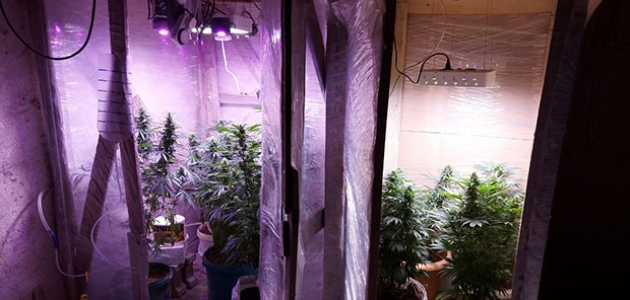 Konya İl Emniyet Müdürlüğü Narkotik Suçlarla Mücadele Şubesi ekipleri, uyuşturucu ile mücadele çalışmaları kapsamında bir evin bodrum katının Hint keneviri yetiştirmek için seraya dönüştürüldüğünü tespit etti.