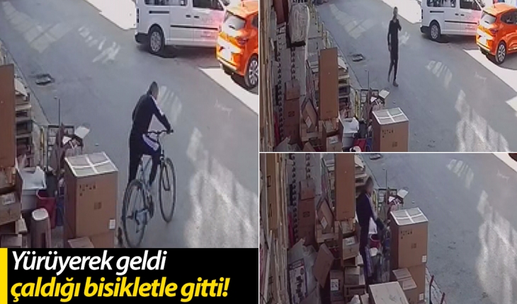 Konya’da Toptancılar Çarşısında şüpheli birisi gözüne kestirdiği bisikleti çalarak uzaklaştı. Hırsızlık anları ise güvenlik kamerası tarafından an be an kaydedildi.