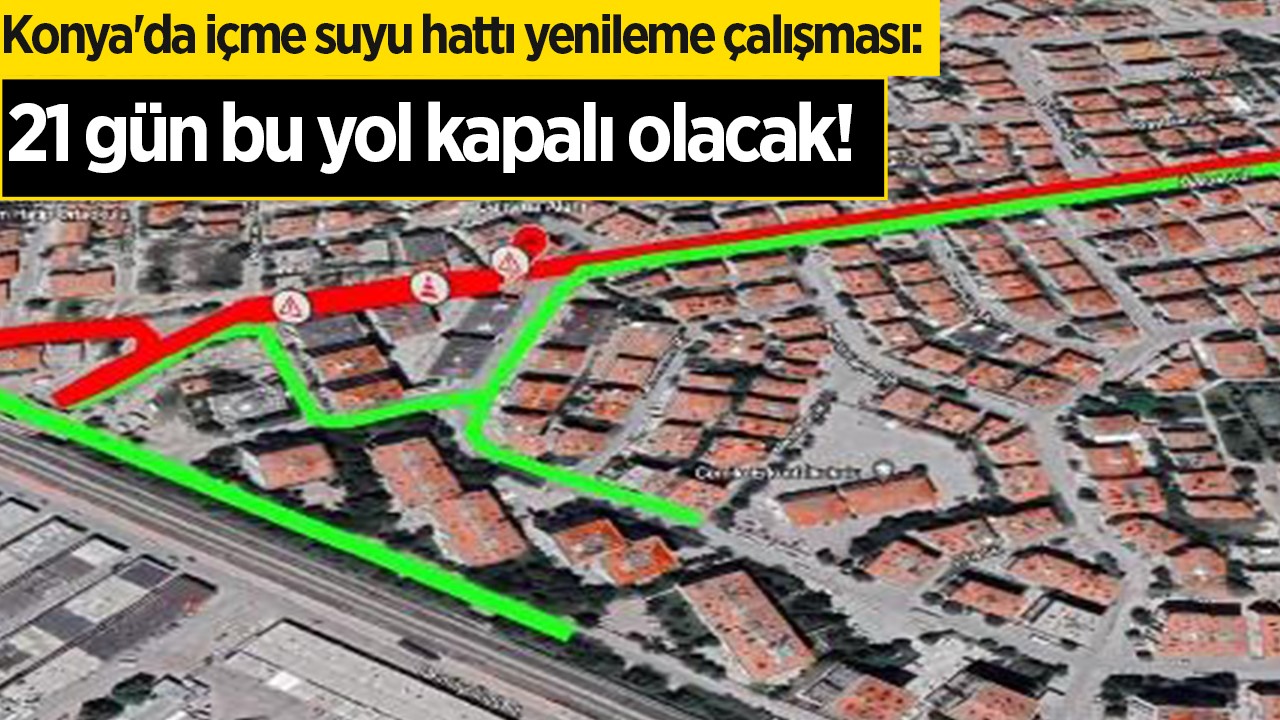Konya'da Işıklar Mahallesi Malas Caddesi’nde içme suyu hattı yenileme çalışması yapılacak. Çalışma esnasında yol araç trafiğine kapatılacak.