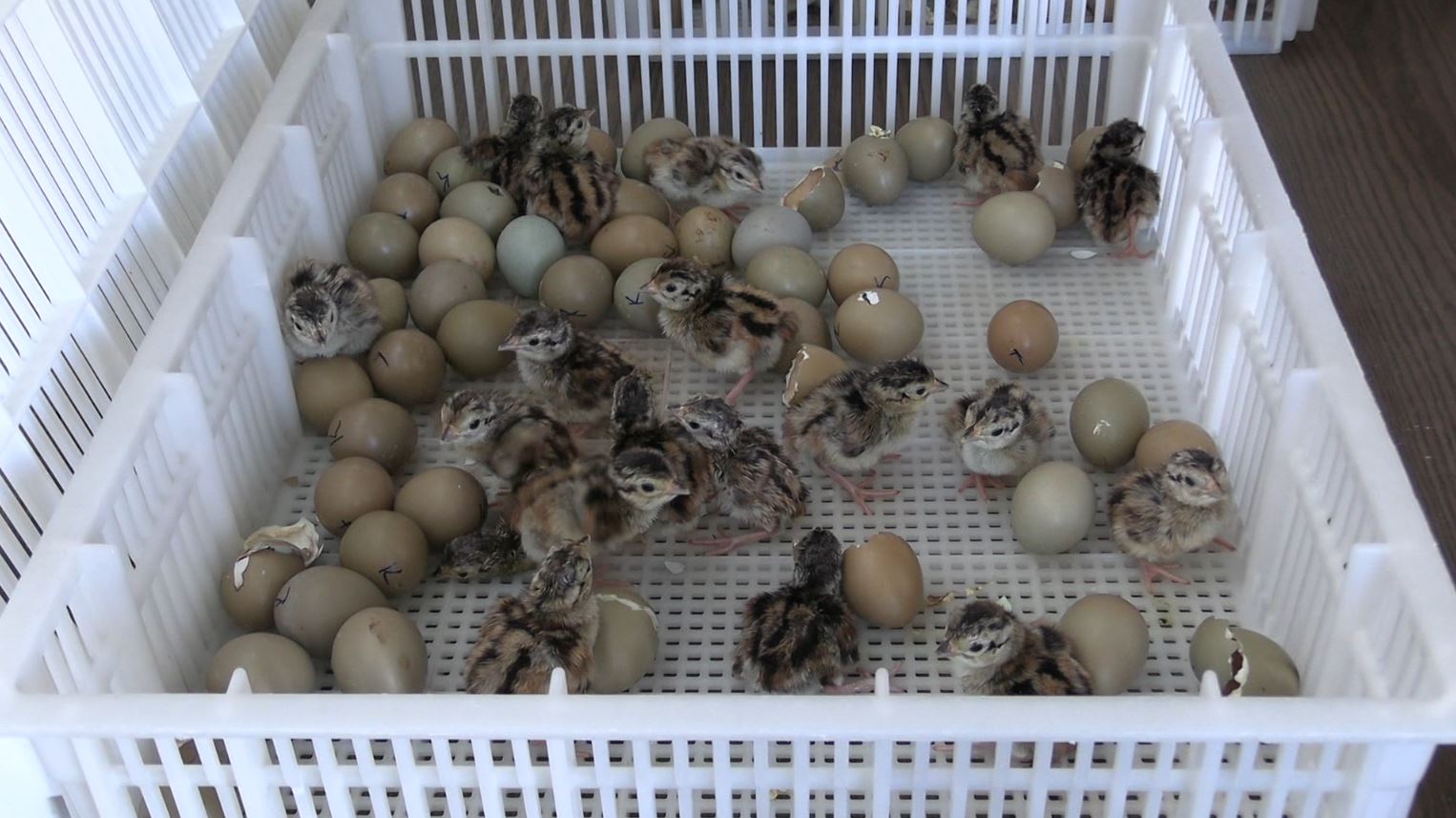 Yumurtalar önce gelişim makinelerine yerleştirilerek 21 günlük embriyo sürecini nem ve sıcaklık kontrollü ortamlarda tamamlıyor. Yumurtadan çıkan civcivler, hemen ardından gelişim odalarına aktarılıyor ve 4 hafta boyunca özel kafeslerde büyütülüyor.
