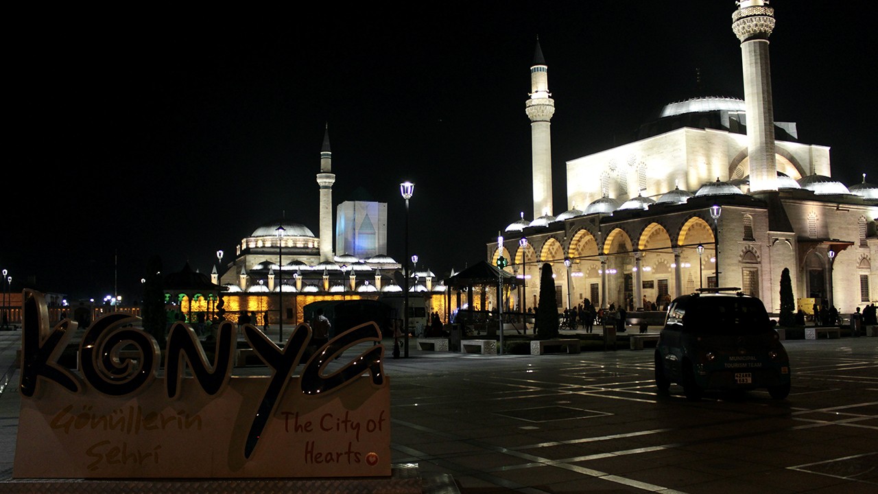 Konya'da vatandaşlar, yatsı ezanının okunmasıyla Mevlana Meydanı'ndaki Sultan Selim Camisi'ni doldurdu.