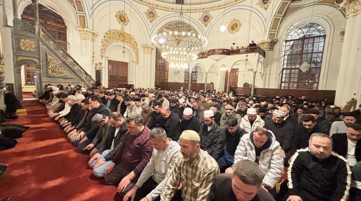 Konya'da vatandaşlar, yatsı ezanının okunmasıyla tarihi Bedesten Çarşısı'nın içinde bulunan Aziziye Camisi'ni doldurdu.