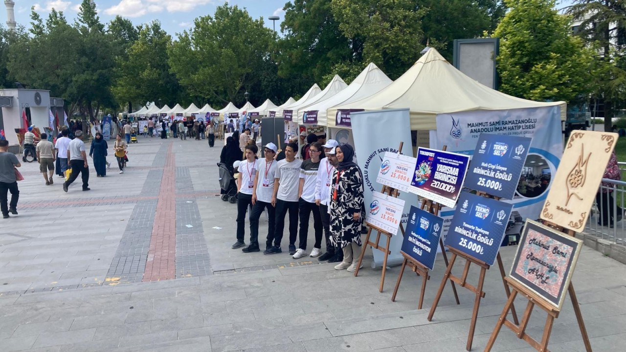Öğrenciler kurdukları stantlarda, yıl içinde yaptıkları çeşitli araştırma ve çalışmaların maketlerini sergiledi.