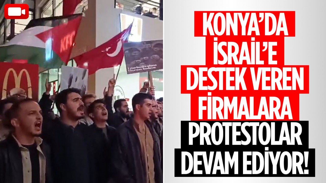 Bu kapsamda Konya’nın Meram ilçesinde bulunan bir alışveriş merkezinde bulunan Starbucks, KFC, Burger King ve McDonalds gibi firmalar sloganlar eşliğinde protesto edildi.