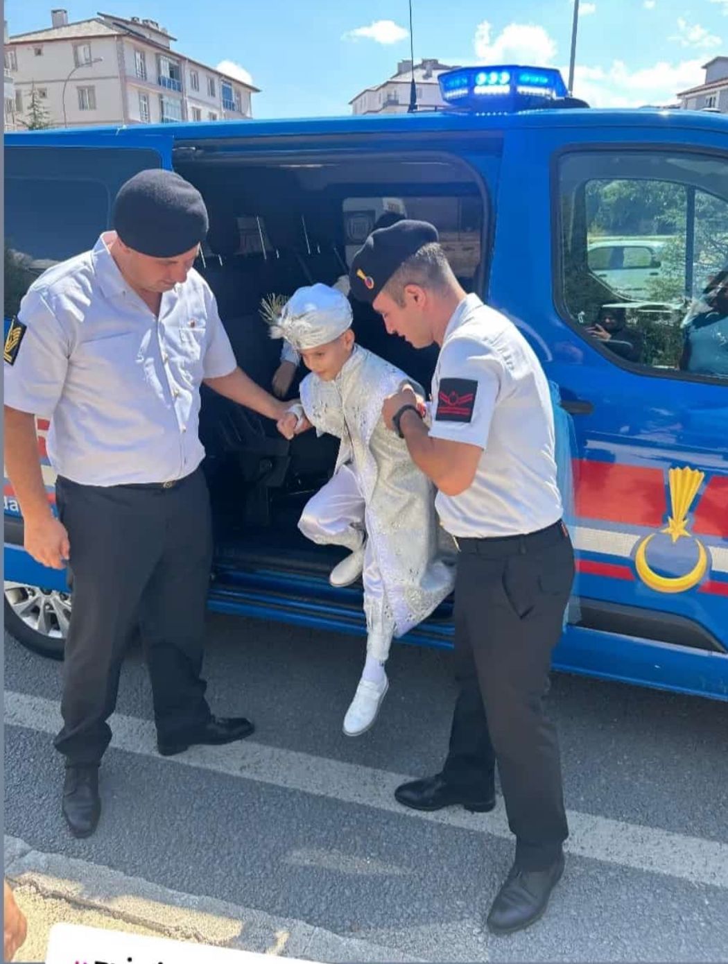 Çocuk için süslenen İlçe Jandarma Komutanlığının görev aracı, sünnet arabası olarak tahsis edildi.