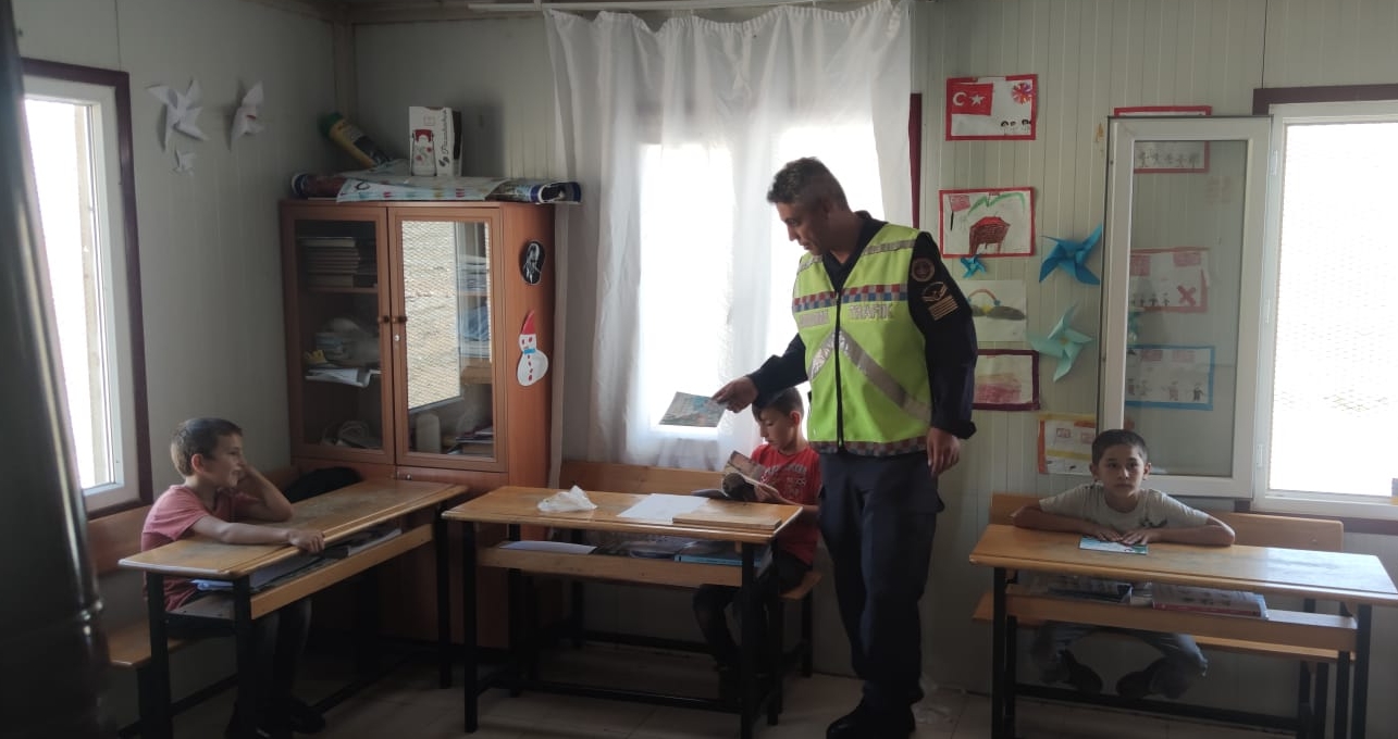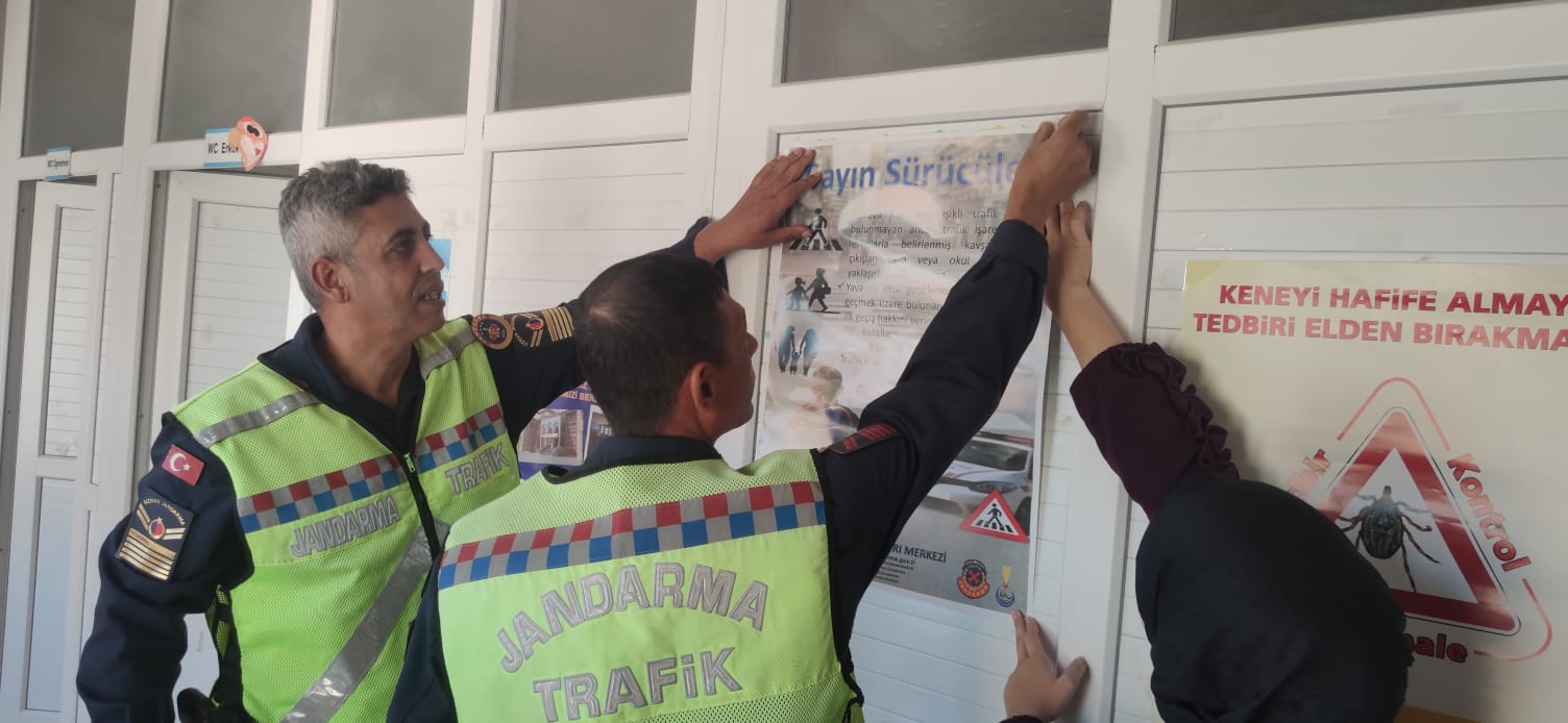 İlçe Jandarma Komutanı Mesut İnan'ın katılımıyla gerçekleştirilen eğitimde, ilköğretim öğrencilerine trafikte dikkat edilmesi gereken kurallar ile servis araçlarında uyulması gereken güvenlik tedbirleri anlatıldı.