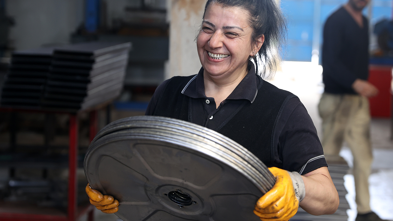 Eşi kaynak ustası olan Özlem Bilici de bir yıldır, her sabah eşiyle geldiği atölyede taşlamadan paketlemeye bütün alanlarda görev alıyor.