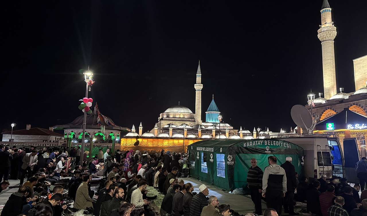Konya'da vatandaşlar yatsı ezanının okunmasıyla Mevlana Meydanı'ndaki Sultan Selim Camisi ile önündeki Mevlana Meydanı'nı doldurdu.