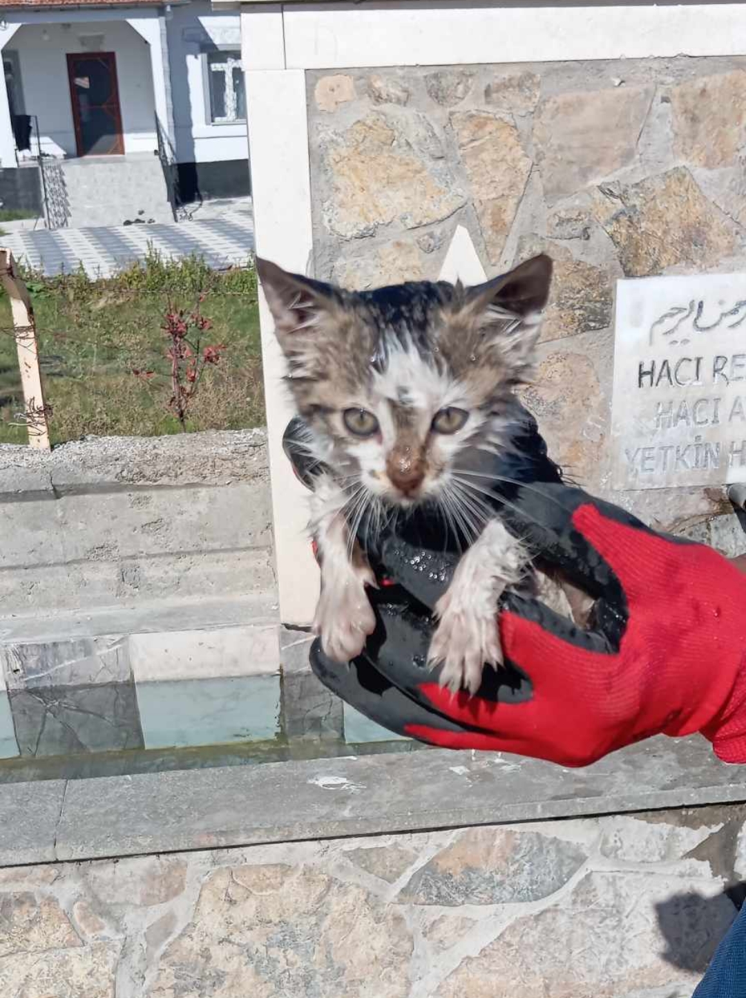 Kedi ekipmanlar desteği ile ekiplerin uğraşları sonucu bulunduğu yerden güvenli bir şekilde çıkarıldı. (Ertan Özkök)