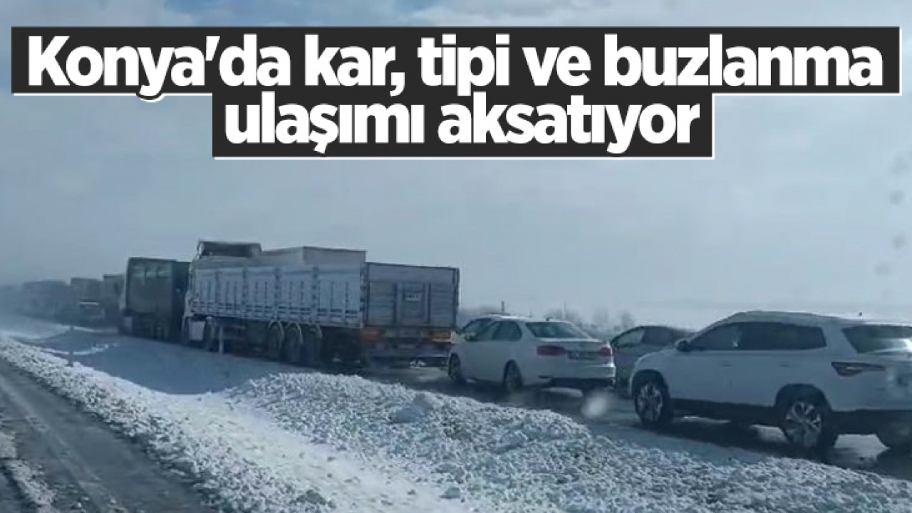 Konya'nın Karapınar ilçesinde yoğun kar yağışının ardından tipi ve buzlanma ulaşımda aksamalara neden oluyor.