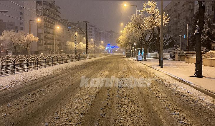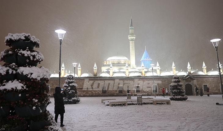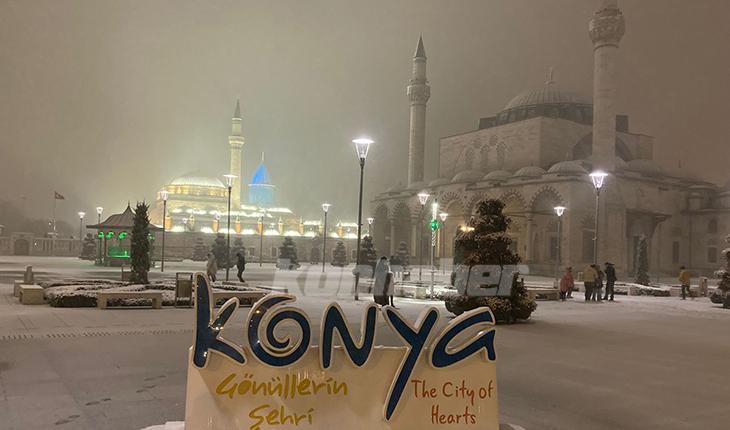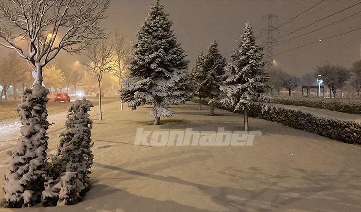 Konya'da kent merkezi ve ilçelerinde kar yağışı etkili oluyor. Akşam saatlerinden beri devam eden kar yağışı ile şehir merkezi beyaza büründü.