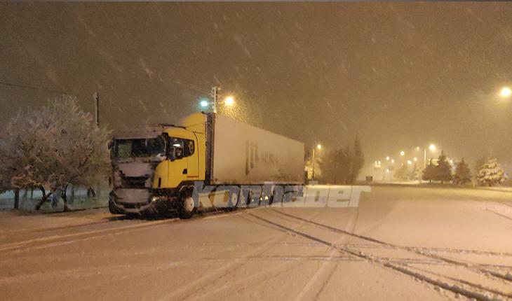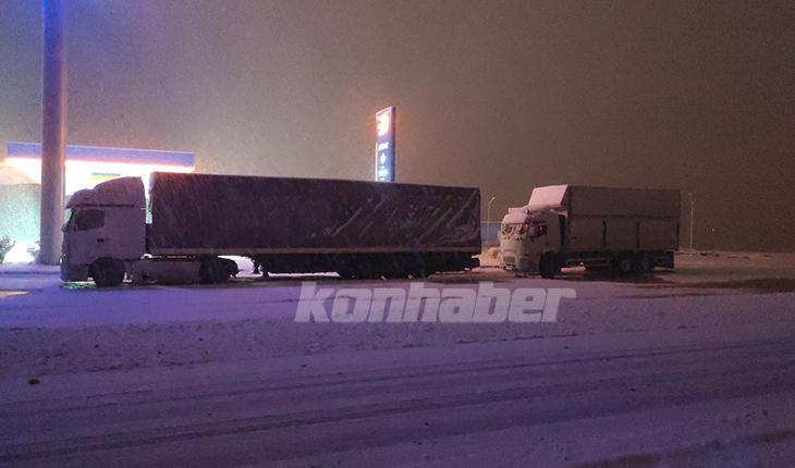 Konya-Antalya kara yolunun Alacabel mevkisinde kar kalınlığı 20 santimetreye ulaştı.