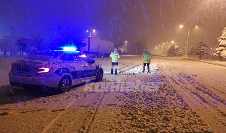 Karayolları ekipleri, kar kürüme ve tuzlama çalışması yaparak yolu açık tutmaya çalışıyor.