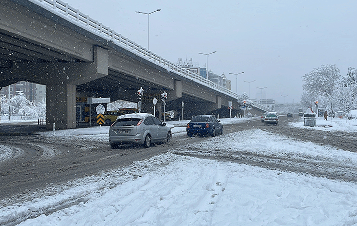 Kar nedeniyle şehir beyaza bürünürken, sabah işlerine gitmeye çalışan sürücüler trafikte zor anlar yaşadı.