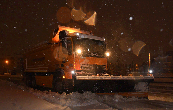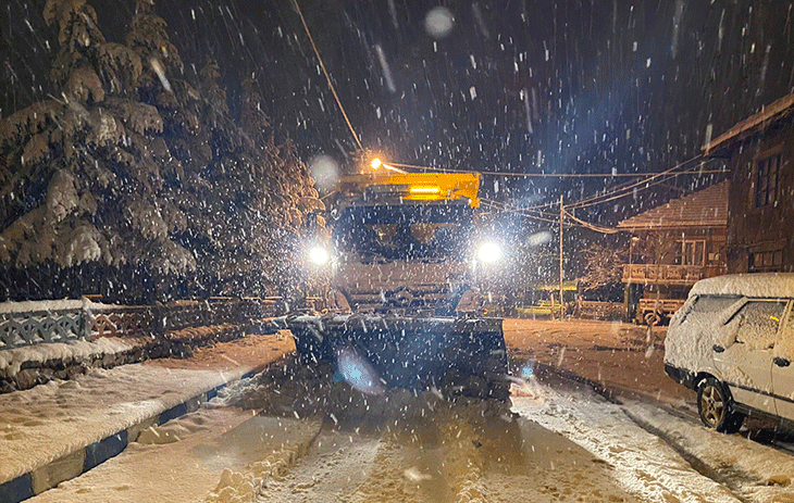 Belediye ekipleri de kar temizleme çalışmalarını sürdürüyor.