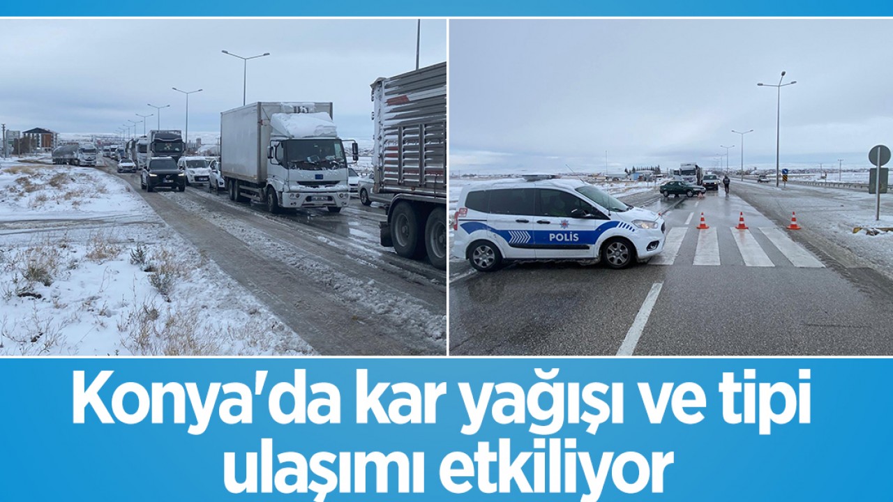 Konya'nın şehirler arası karayollarında etkili olan kar yağışı, tipi ve buzlanma ulaşımda aksamalara sebep oluyor. Kar yağışı ve tipiyle meydana gelebilecek kazaların önlenmesi amacıyla Konya'yı Adana, Ankara, Aksaray Antalya karayolları tamamen Afyonkarahisar karayolu kısmen kapalıyken Isparta'ya bağlayan karayollarına araç trafiğine izin veriliyor.