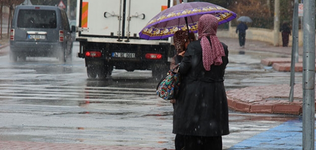 Konya'nın Selçuklu ilçesinde karla karışık yağmur etkili oldu.