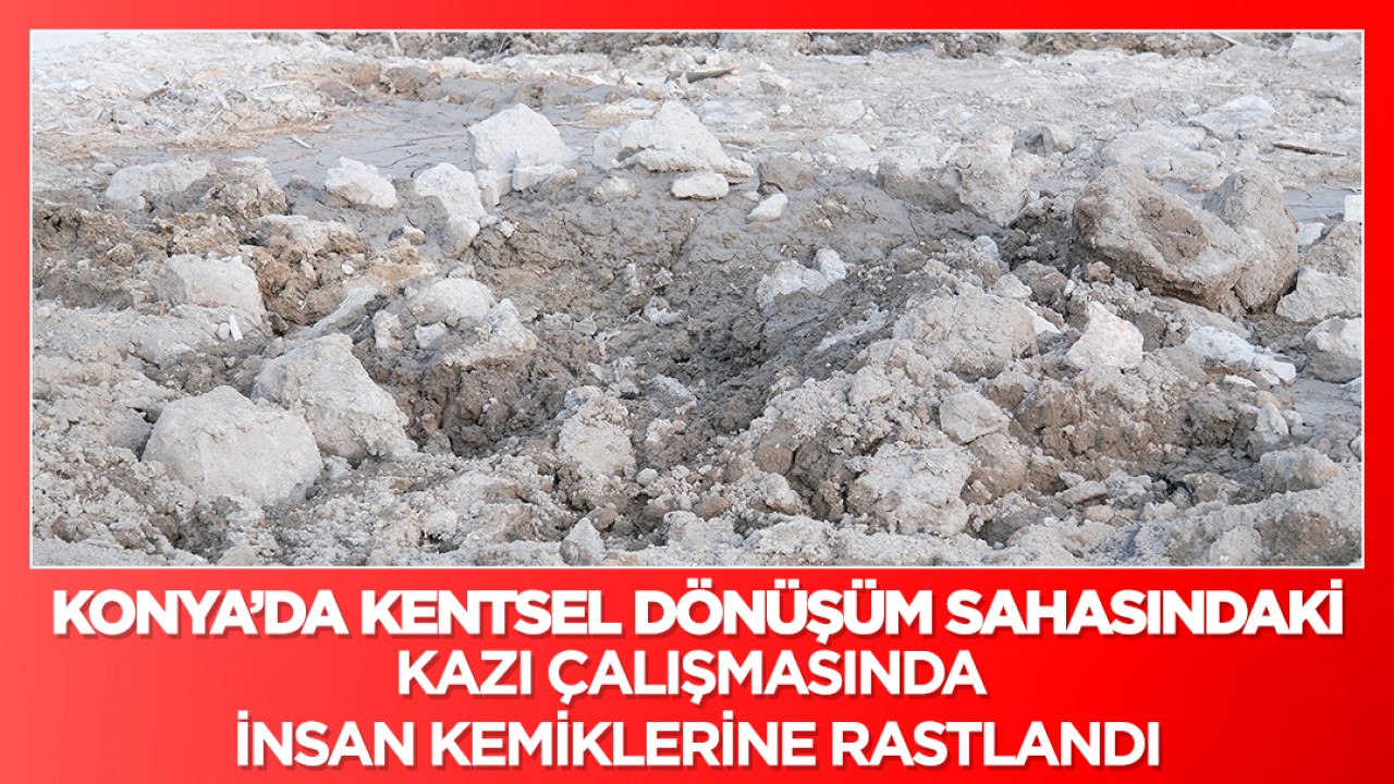 Konya'nın Karapınar ilçesindeki kentsel dönüşüm alanında yürütülen yıkım çalışmaları sırasında insan kemikleri bulundu.