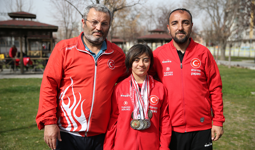 Konya'da yeni tip koronovirüs (Kovid-19) döneminde aldığı kilolardan kurtulması için atletizme yönlendirilen down sendromlu Berfin Yılmaz, yeteneğini fark eden antrenörünün yardımıyla sporda başarıya koşuyor.