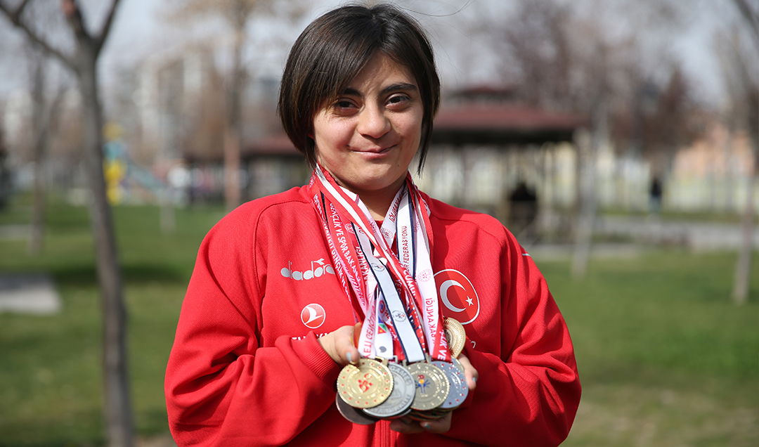Antalya'da gerçekleştirilen Trisome Oyunları'nda katılan Yılmaz, yarıştığı 8 branşta bir altın, bir gümüş ve bir bronz madalya kazandı.