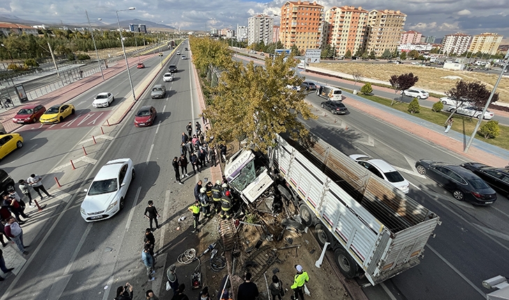 Konya'da kontrolden çıkarak yaya geçidine çarpan tırın sürücüsü yaralandı.