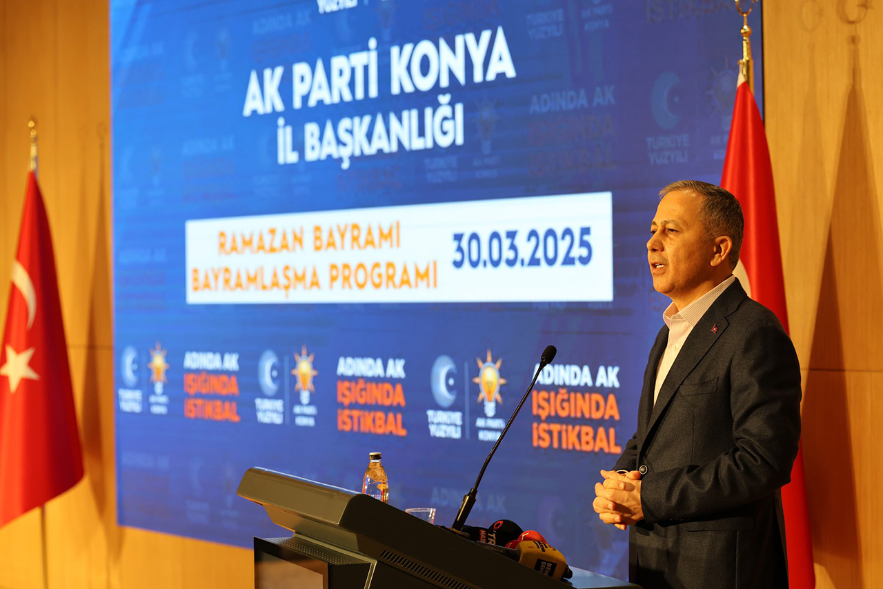 Konya'ya gelen İçişleri Bakanı Ali Yerlikaya, yasa dışı eylemlere karşı görevini büyük bir sağduyuyla gerçekleştiren Emniyet teşkilatının bayramlarını ve disiplinli duruşlarını tebrik etti. "Bütün siyasi partilerin Türkiye'nin bekası için çalışması, "sosyal bölücülüğe" geçit verilmemesi gerektiğ vurgulayan Yerlikaya, son günlerde yapılan boykot çağrılarını da eleştirdi.