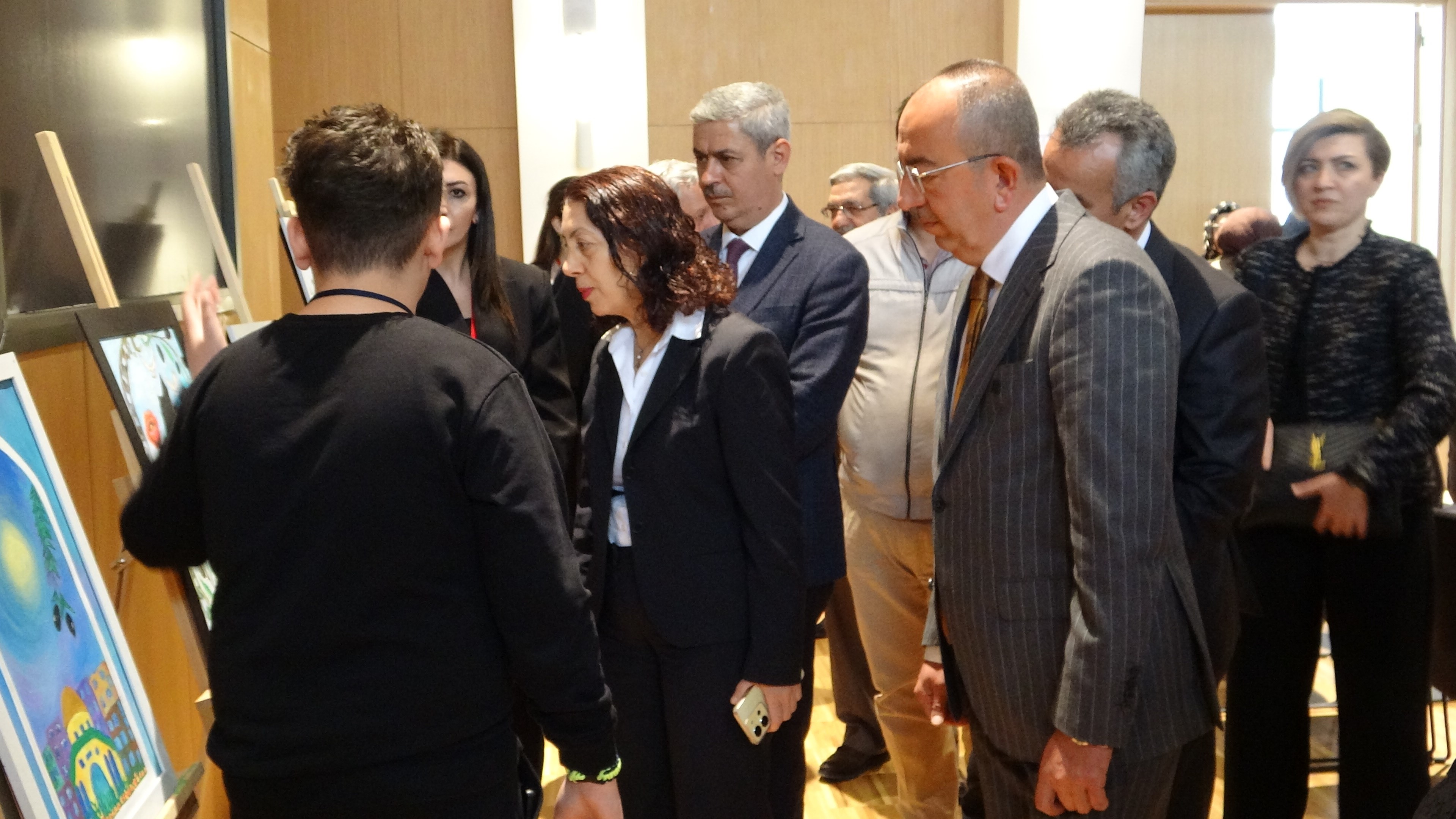Taş Bina Kültür Sanat'ta düzenlenen sergide 2. sınıftan 12. sınıfa kadar öğrencilerin yaptığı 35 resim sergilendi. Sergide konuşan Meram Belediye Başkanı Mustafa Kavuş, "Keşke çocuklarımız bunları çizmeselerdi, bunlara şahit olmasalardı, kafalarında bunlarla ilgili kompozisyon hiç oluşmasaydı" dedi.